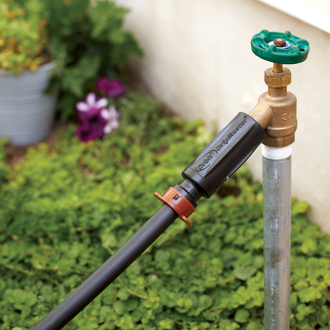 Drip-Lock fittings connect 1/2-in. drip distribution or emitter tubing to a sprinkler line, hose faucet, or valve. They fit 1/2-in. tubing with outside diameters ranging from .630- to .700-in. Stainless steel teeth grip the pipe tightly and a special O-ring creates a watertight seal while still allowing for rotation of the fitting after insertion. A built-in removal collar allows for easy reconfiguration and reuse of the fittings, including end-of-season disassembly for compact winter storage. The Drip-Lock manifold is an especially convenient way to connect 1/2-in. distribution tubing to 1/4-in. distribution tubing which can then go to each individual plant. For outdoor irrigation use with cold water only.