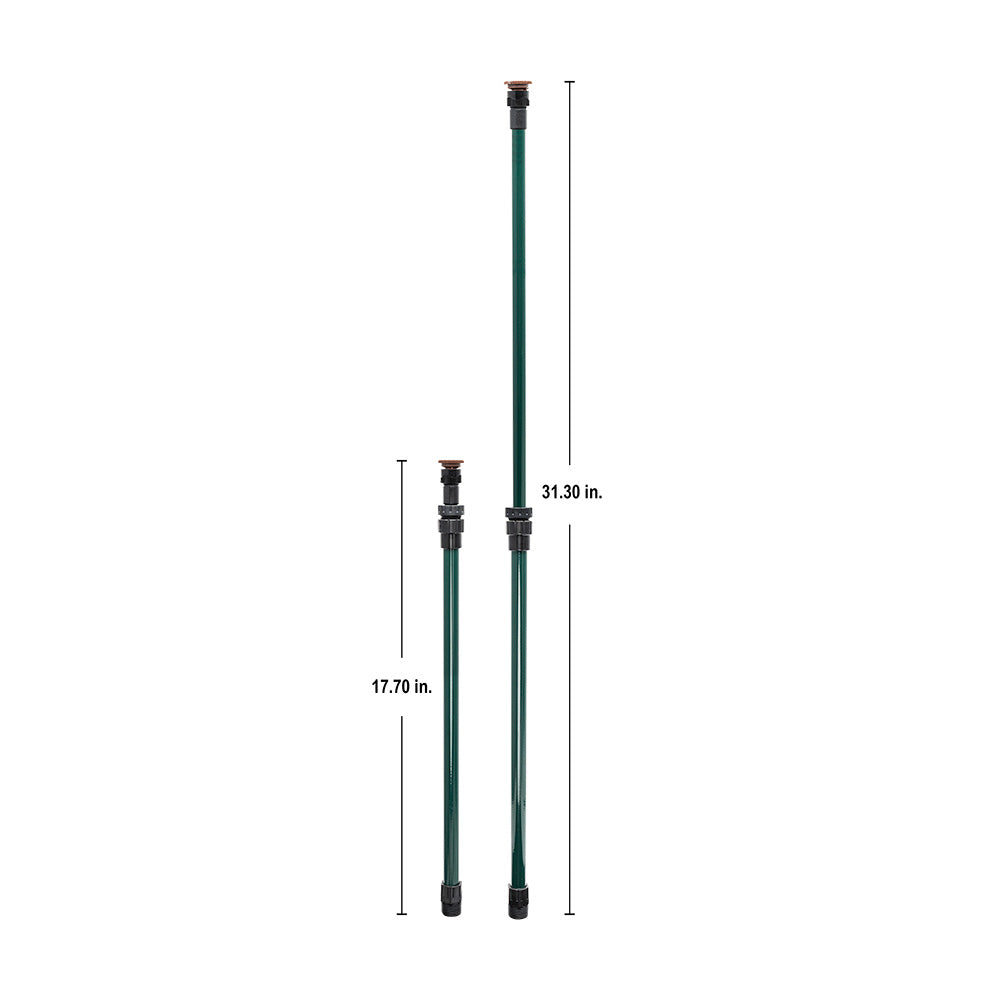 Adjustable shrub risers with adjustable nozzles allow you to adjust the riser height according to the future growth of the shrubs. While this can be accomplished with traditional PVC risers and couplings, the adjustable shrub riser is made from durable aluminum and features a locking nut that permits you to telescope the riser up or down in fine increments. The riser inlet is 1/2-in. male pipe thread (MPT) and you will typically insert it into a 1/2-in. PVC Tee or Elbow underground. The adjustable pattern nozzles permit arc adjustment from 0 to 360 degrees and radius adjustment down to 50% of the rated distance and are replaceable with all Orbit, Hydro-Rain, and female-thread nozzles, as well as nozzles from other major manufacturers. For outdoor irrigation use with cold water only.Spray sprinkler bodies without pressure regulation cannot legally be sold to customers in certain states of the USA. These states are California, Colorado, the District of Columbia, Hawaii, Maine, Massachusetts, New Jersey, New York, Oregon, Rhode Island, Vermont, and Washington.