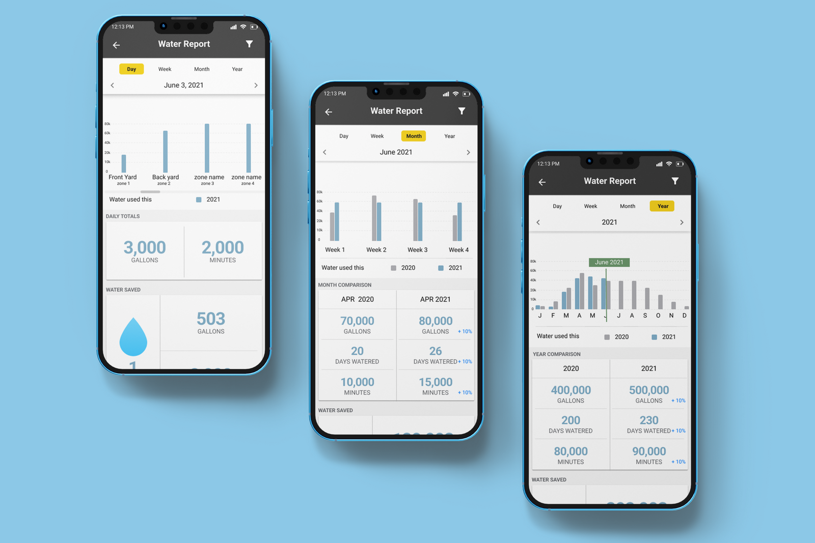 Detailed watering reports let you take control of your water use. Track how you're doing year-over-year, all the way down to a daily report. Knowledge is power, and B-hyve is here to empower you to manage your yard in the most effective way possible.