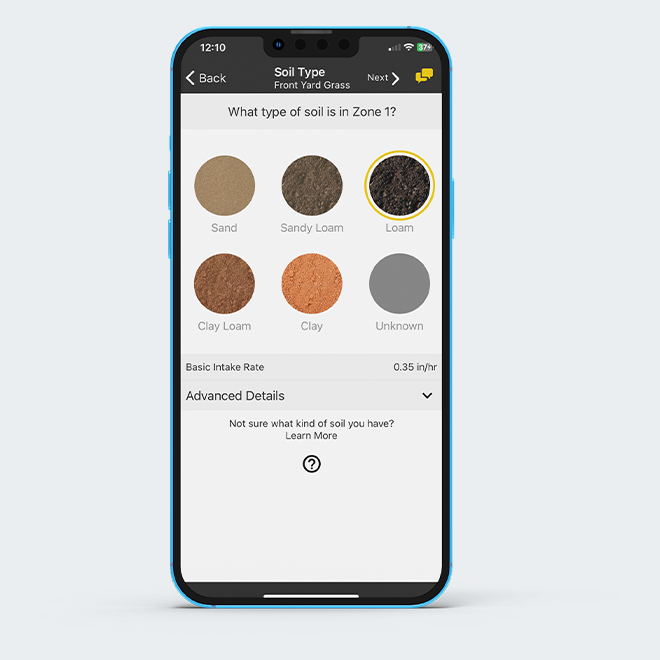 B-hyve's setup wizard makes personalizing your yard info a breeze. Add details about your yard's soil type, sun exposure, slope, plant types, and more at the zone level. B-hyve waters each zone on its own unique schedule – because sometimes your flowers need a bit more water than your shrubs.