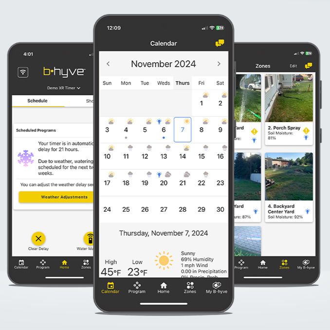 B-hyve checks real-time weather and forecast data and then plans the best watering strategy for each zone to make sure that they each get exactly the right amount of water to help your lawn look its best. It's like having a meteorologist and a landscaper at your fingertips!