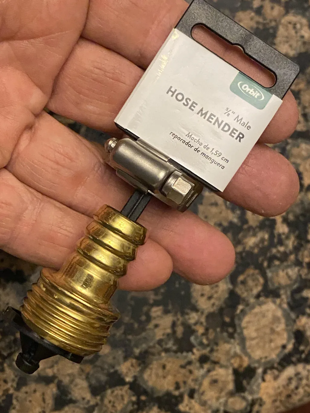 The heavy-duty brass cylinder slides into your hose and has barbing on the sides to keep it secured within the tubing. Sturdy clamps hook onto the outside of the hose to further help keep the shank mender in place. The heavy-duty 5/8-in. brass hose mender works with 5/8-in. standard garden hoses. It attaches to the male-threaded end of a water hose to prolong its life. With durable brass construction and a comfort grip, this hose repair fitting is ideal for replacing the attachment end of your water garden hose. This garden hose repair kit is strong and long-lasting and ensures many years of dependable water hose repair. For all your garden hose fixing needs, this water hose repair part is perfect.
